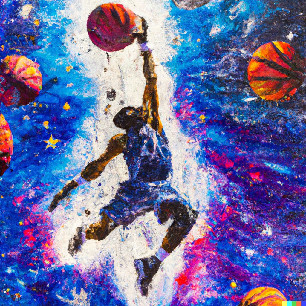 But hold on. A machine can only do so much, right? Can it really perform creative tasks beyond the threshold of its corpus? Great question, Watson. Let’s find out. Someone asked Dall-E to paint a basketball player dunking in the middle of an exploding nebula and it created this.