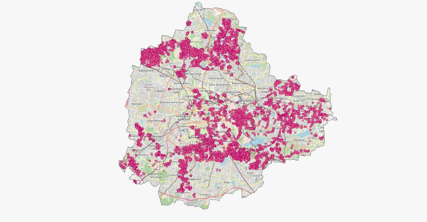 Bangalore is currently in pink trumpet season. Of course, this being Bangalore, someone found coordinate data and geotagged every pink trumpet tree in the city.