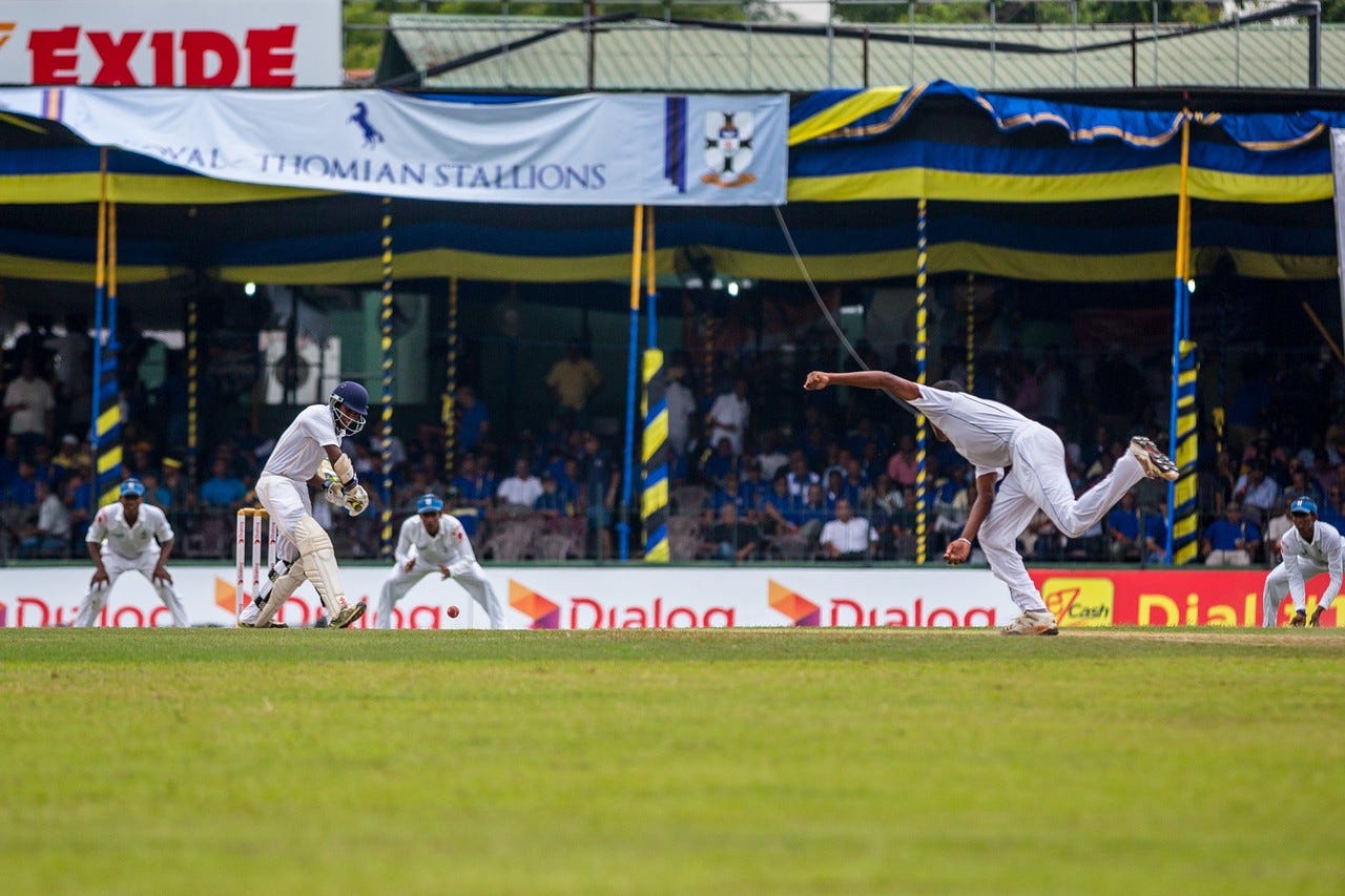 The Derby is the annual cricket match between Royal College and St. Thomas College in Colombo. If you’re a talented young cricketer in Sri Lanka, there’s a high chance you’ll play this game. Hundreds, sometimes thousands, turn up every year, giving it the gravitas of an international contest. At times, the noise here is greater than what you might expect at a Test match. The Blues rivalry goes back more than 100 years, played through civil wars and pandemics. Nothing comes in its way.