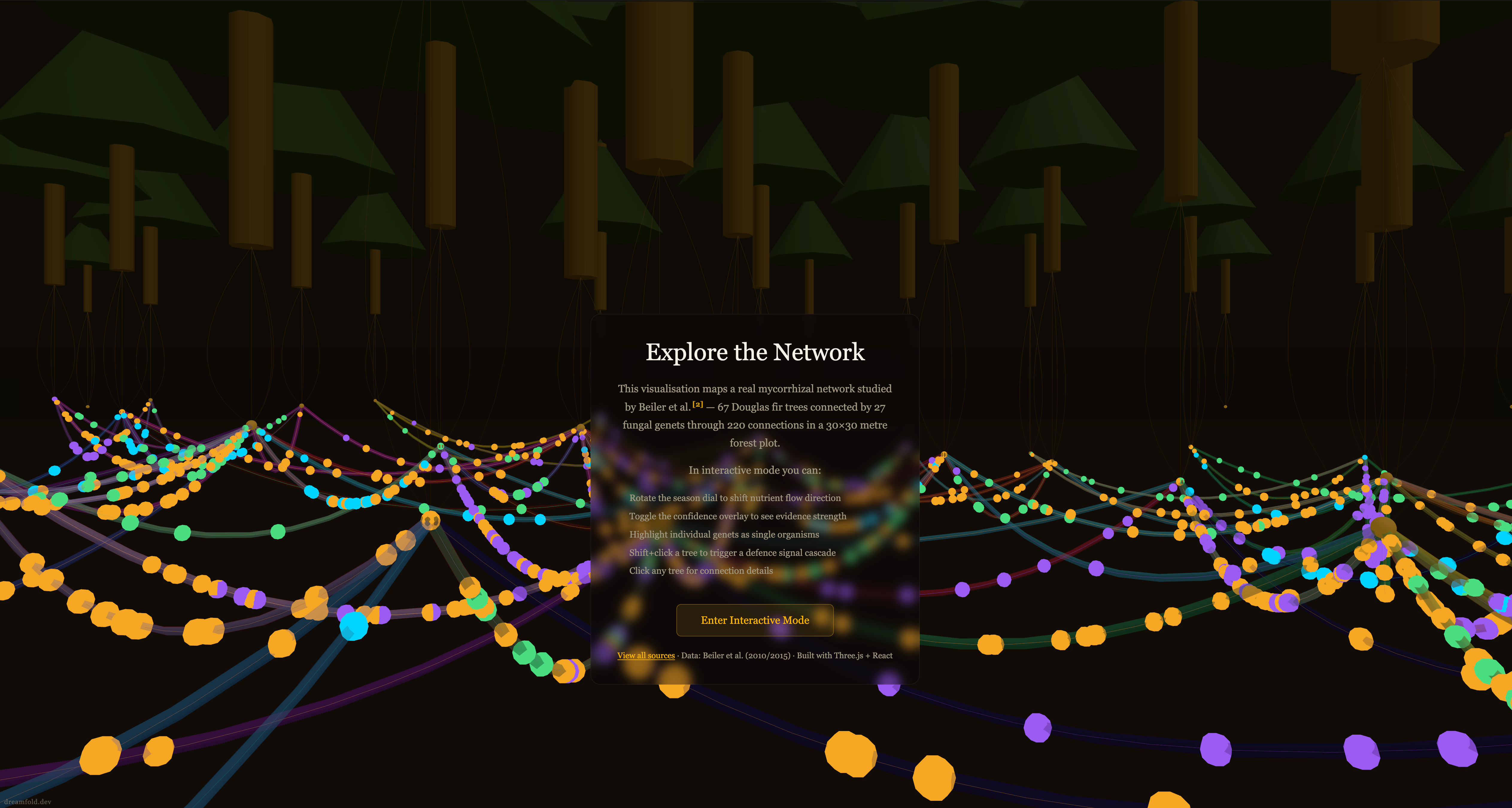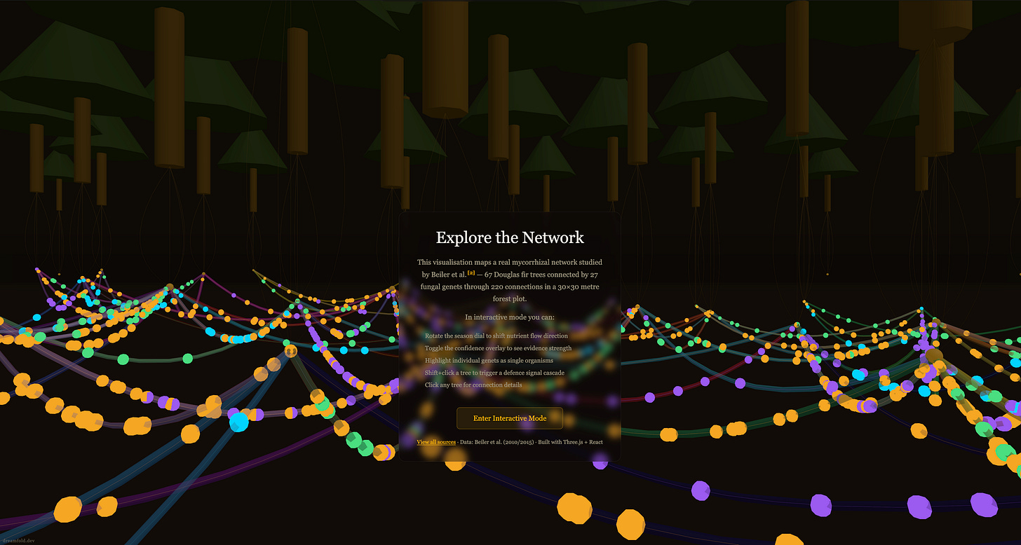 Somewhere deep within Reddit, I found this absolutely insane visualisation of the underground fungal network between 67 trees.